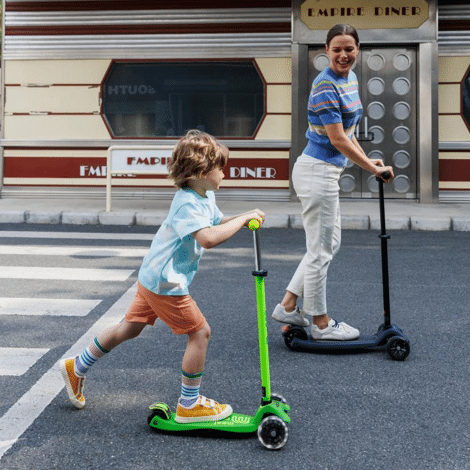 De step Maxi Deluxe LED – Geel/Groen Neon is ontworpen voor kinderen vanaf 5 tot ca 12 jaar. Net als bij de Mini Micro hebben we hier extra evenwicht door grotere wielen vooraan.
