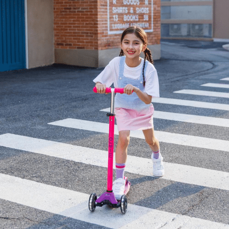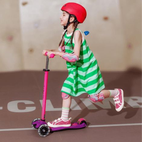 De step Maxi Deluxe LED – Paars/Roze Neon is ontworpen voor kinderen vanaf 5 tot ca 12 jaar. Net als bij de Mini Micro hebben we hier extra evenwicht door grotere wielen vooraan.